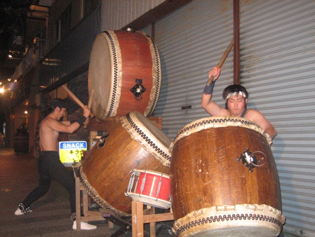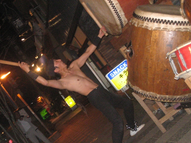 第一土曜に歌やチンドン屋、打楽器、太鼓などのいろんな分野の人たちが集まって