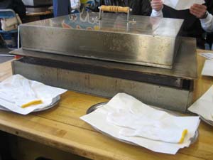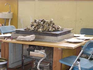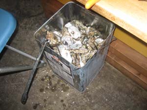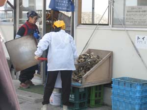 牡蠣をスコップですくい